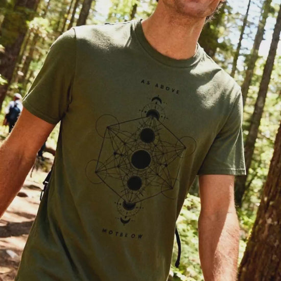 ✨ This isn't your average tee; it's a statement for the soul. Inspired by the legendary Hermetic principle from the Emerald Tablet, "As Above, So Below" invites you to ponder the grand tapestry of existence. Imagine: the sprawling rivers reflecting the veins in your hands, the vast cosmic patterns mirrored in your own life journey. This principle reminds us that the laws governing the universe also hum within us, connecting the spiritual and physical realms in a beautiful, endless dance.