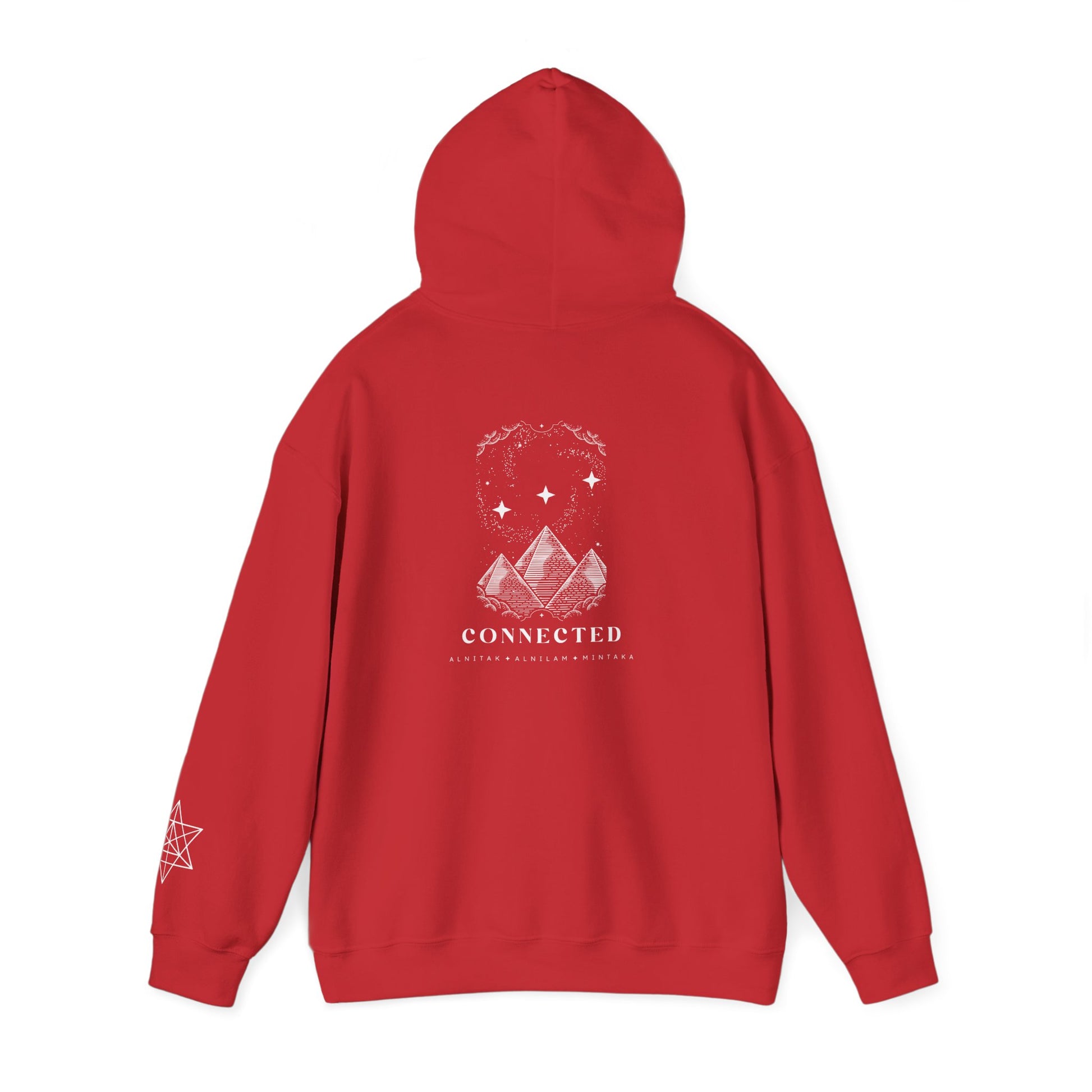 ✨ This isn't just a hoodie; it's a hug from the cosmos! Printed with eco-friendly inks (because even galaxies appreciate a clean footprint!), this shirt proudly displays three powerful pyramids perfectly aligned with the dazzling three stars of Orion's Belt. And below it all, the word 'Connected' – because, you are!