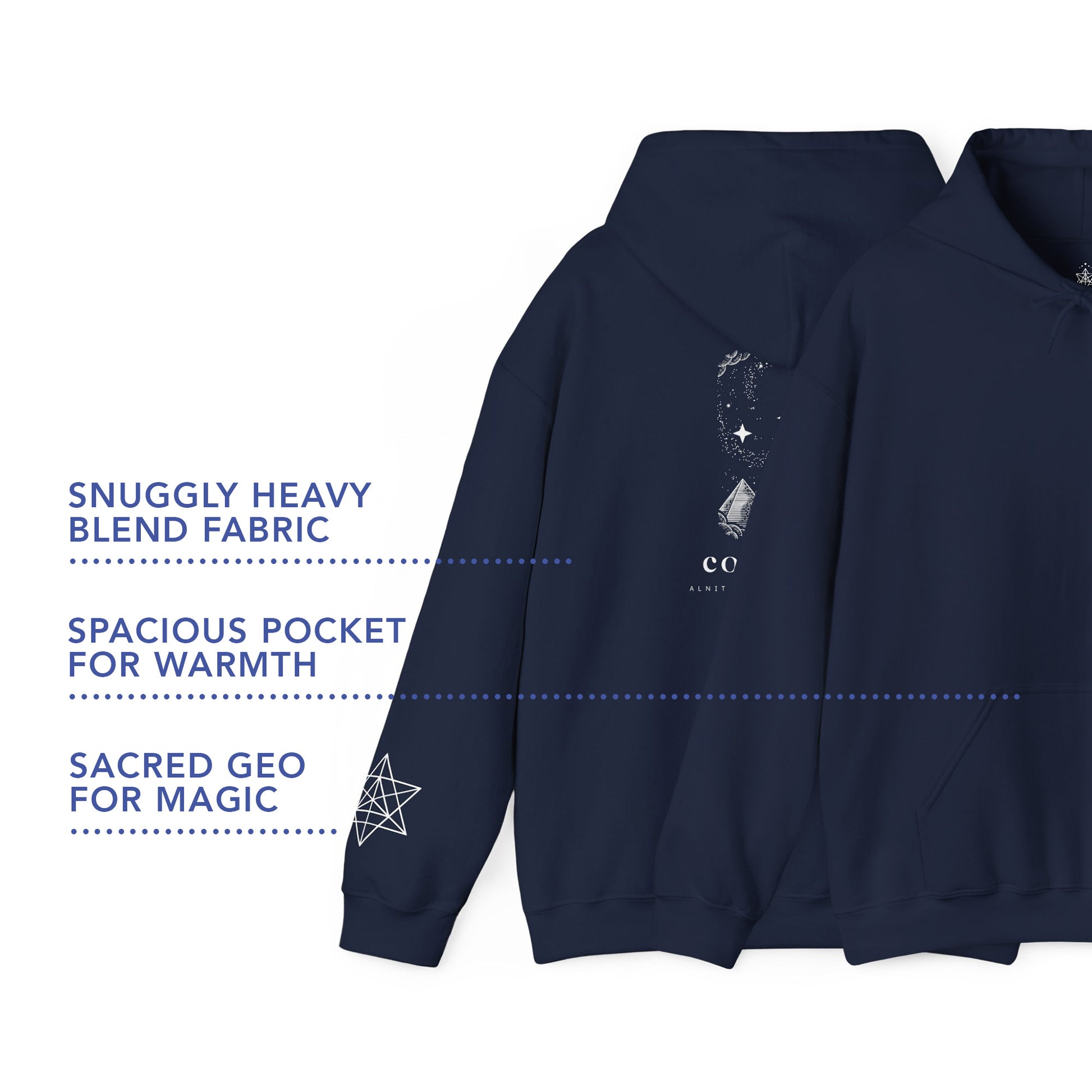 ✨ From deep meditation sessions to perfecting that downward dog, or simply enjoying a cozy evening of Netflix and chill, this chic Unisex Heavy Blend™ Hooded Sweatshirt is your go-to. This is your daily reminder that you're part of something much bigger, a spiritual portal of starlight and earthly wisdom, calling out the three portal stars of Orion: Alnitak, Alnilam, and Mintaka on the design!