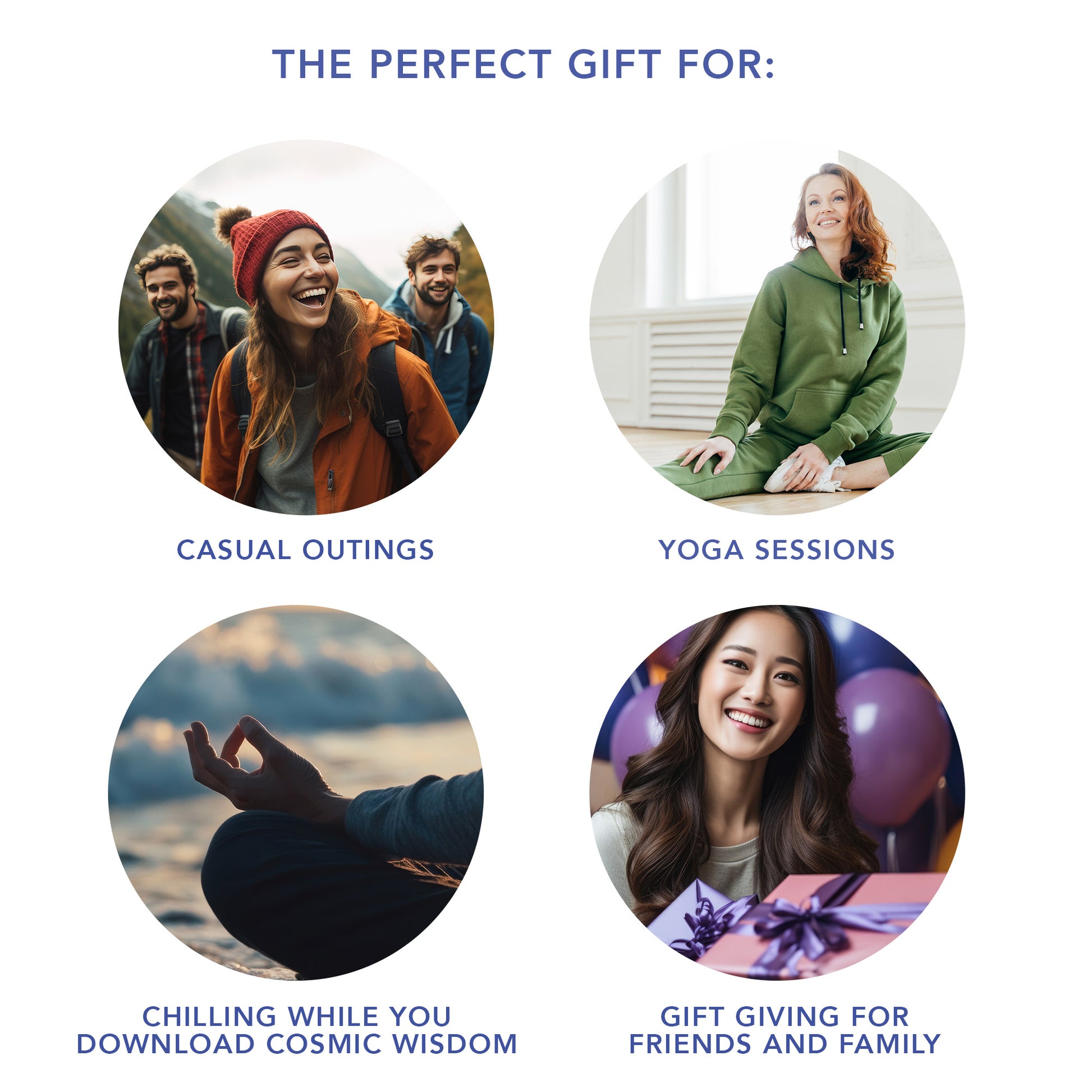 - Casual outings, yoga sessions, or just chilling while you download cosmic wisdom.