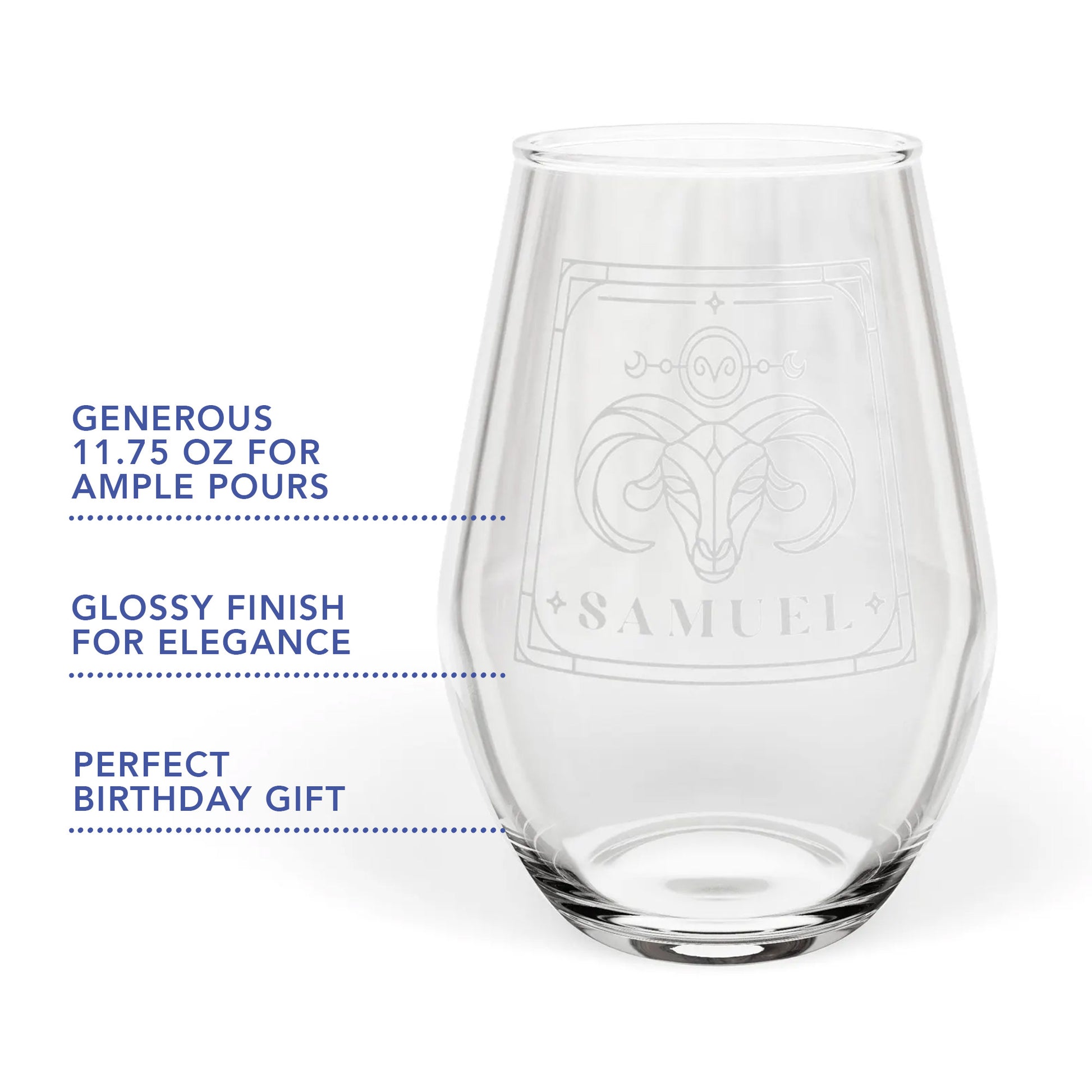 ✨ Designed with a sleek, modern aesthetic, this glass features *your* zodiac and name engraved right on the front – talk about a conversation starter! Feeling extra? Add your name engraved too, making this stemless beauty truly one-of-a-kind. It feels sophisticated, contemporary, and perfectly weighted for all your conscious clinking.