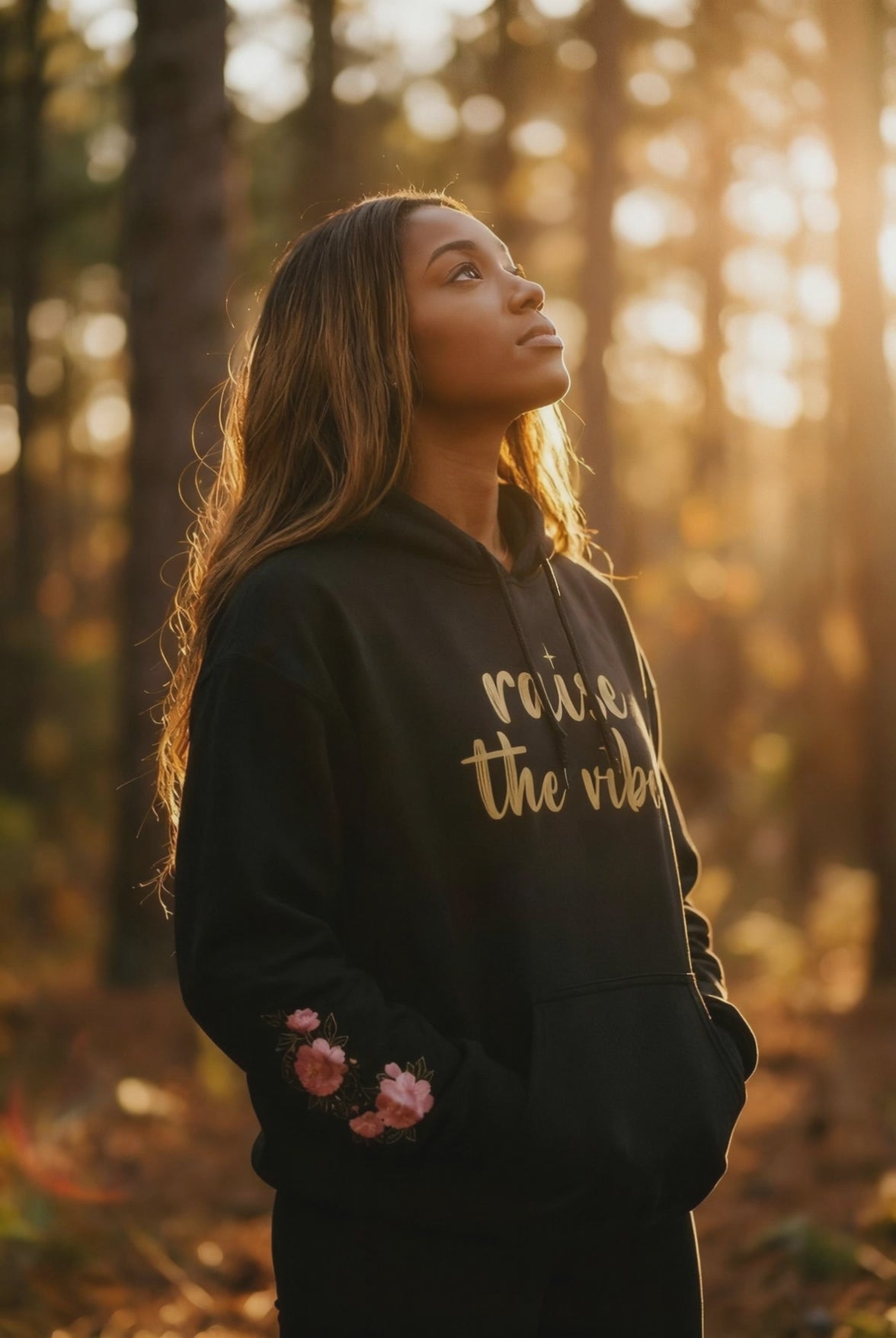 ✨ Level Up Your Zen Game (and your wardrobe!) Meet your new favorite spiritual sidekick: the "Raise Your Vibe" hoodie! It’s like a warm, fuzzy blanket for your soul, packed with tranquility, power, and enough comfort to make you rethink ever wearing anything else. Designed for mindful souls who are busy manifesting dreams but still need to stay snuggly.